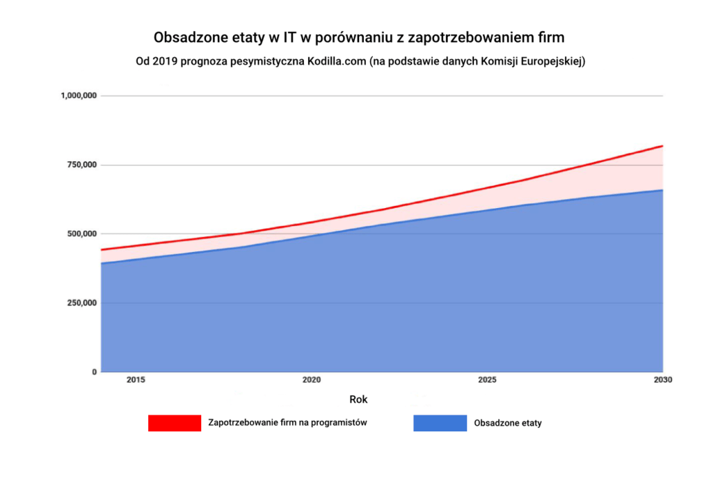 W oficjalnym obiegu wciąż krążą dane z opublikowanego przed pięciu laty raportu przygotowanego dla Komisji Europejskiej przez firmę Empirica. Przedstawione wówczas prognozy mówiły, że do roku 2020 w samej tylko Unii zabraknie niemal 1 mln programistów. Te szacunki są już nieaktualne, ale nowe, odświeżone nadal niepokoją.
