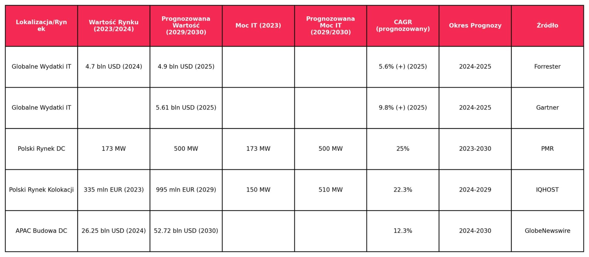 The digital infrastructure market, and in particular the data centre sector, is experiencing rapid growth both globally and locally. Forecasts point to a further acceleration in IT spending. Forrester predicts that global IT spending will grow by 5.6 per cent in 2025, reaching $4.9 trillion, while Gartner is even more optimistic, forecasting an increase of nearly 10 per cent to $5.61 trillion in 2025 .