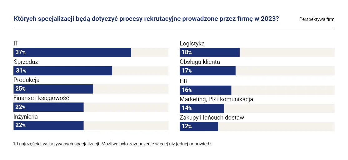 Firmy na szeroką skalę będą rekrutować ekspertów w dziedzinie IT i nowych technologii, sprzedaży, produkcji i inżynierii, finansów i księgowości oraz logistyki. Organizacje będą również kontynuować trend wzmacniania swoich struktur menedżerskich, poszukując skutecznych liderów z wysoko rozwiniętymi kompetencjami miękkimi. O tym, jak kluczowe dla firm są obecnie zdolności menedżerskie, świadczą wyniki badania Hays. Kompetencje kierownicze zostały zidentyfikowane zarówno jako najbardziej potrzebne, jak i najtrudniejsze do pozyskania.
