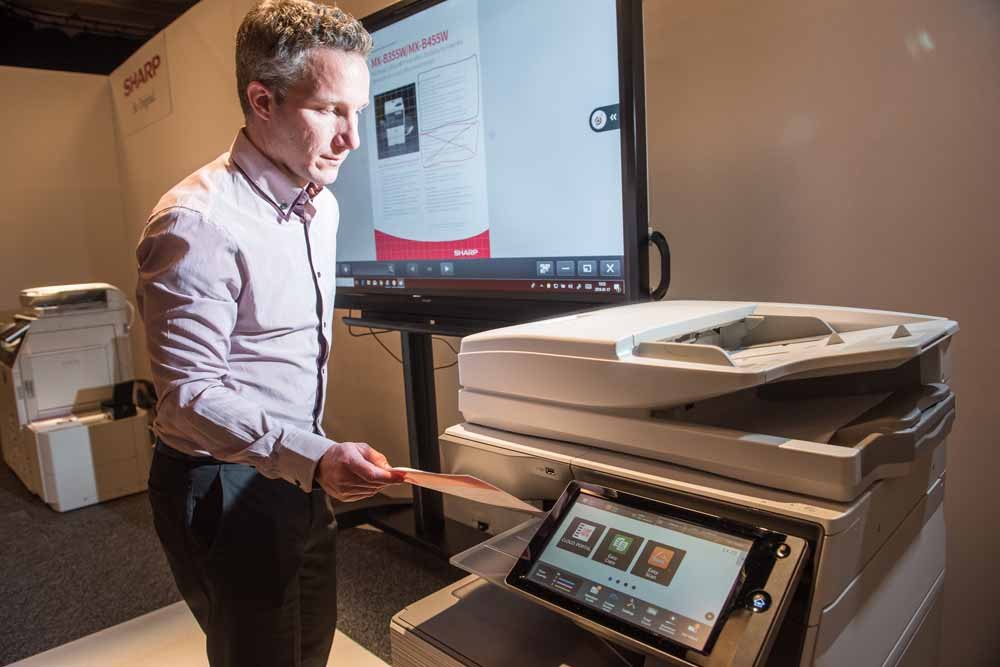 Sharp zaprezentował 15 nowych urządzeń (wszystkie wejdą do sprzedaży do marca 2018 roku), w tym całkowicie odświeżoną ofertę urządzeń wielofunkcyjnych A3 do druku czarno-białego, nowe modele urządzeń A4, systemy do druku produkcyjnego oraz nowy monitor interaktywny BIG PAD. Firma podzieliła się również swoją wizją inteligentnej sali konferencyjnej, demonstrując sterowanie monitorem interaktywnym za pomocą głosu.
