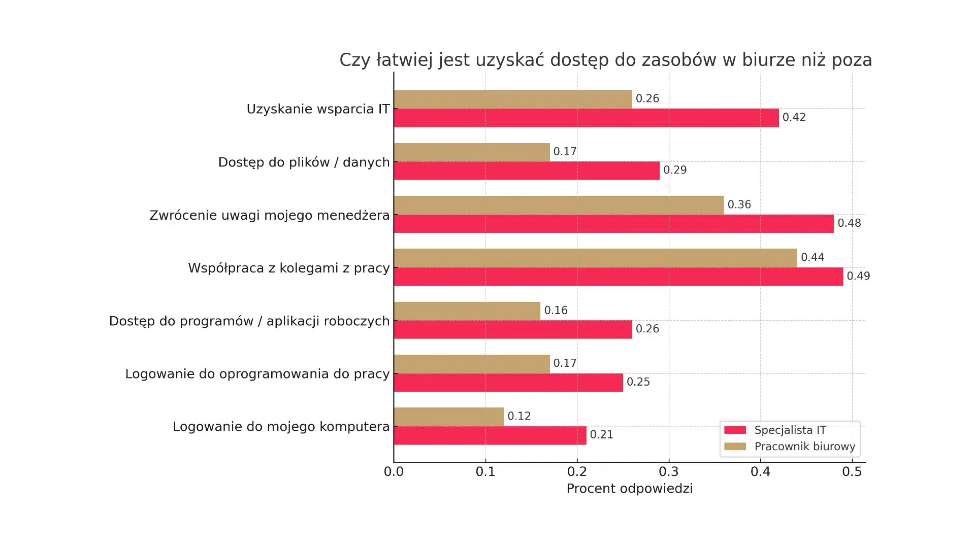 To prowadzi do zjawiska, które można nazwać „cyfrowym wykluczeniem”. Blisko połowa badanych, bo aż 49%, przyznaje, że słaba technologia sprawia, iż czują się odłączeni od reszty organizacji.
